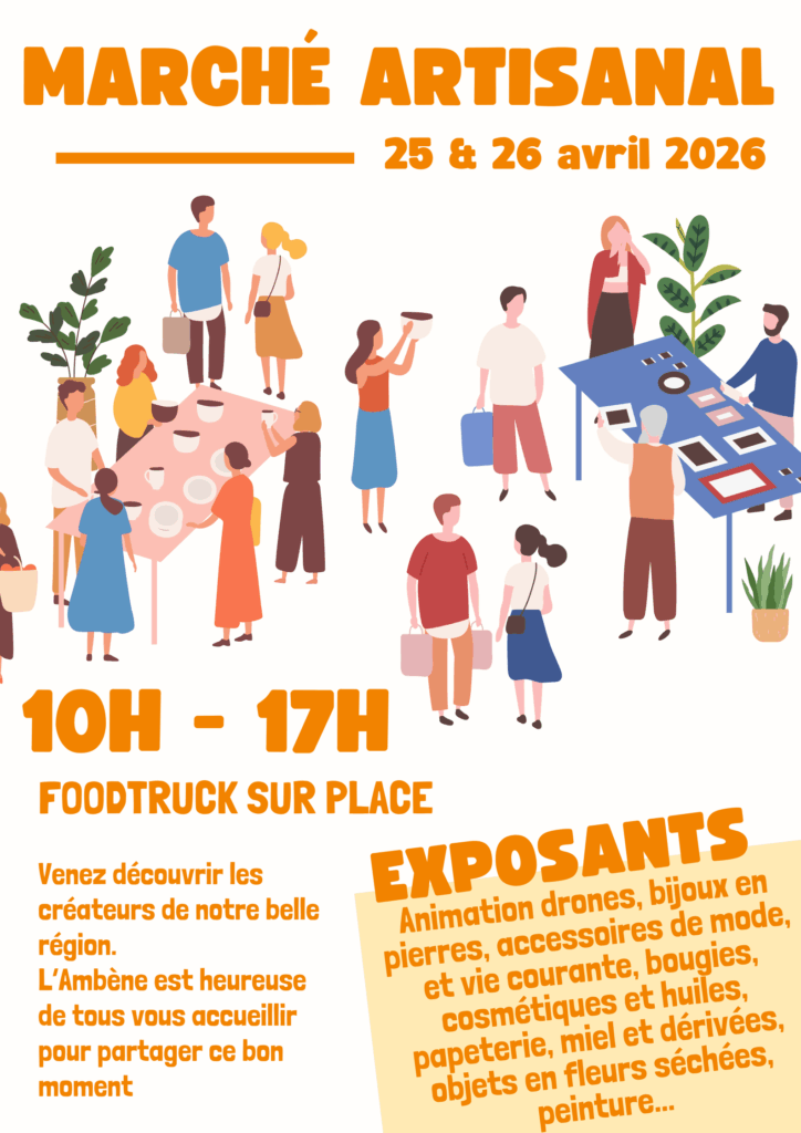 Créanimette sera au marché artisanal de l’Ambène à Mozac le dimanche 26 avril 2026 de 10H à 17H sous le cloître de Mozac.