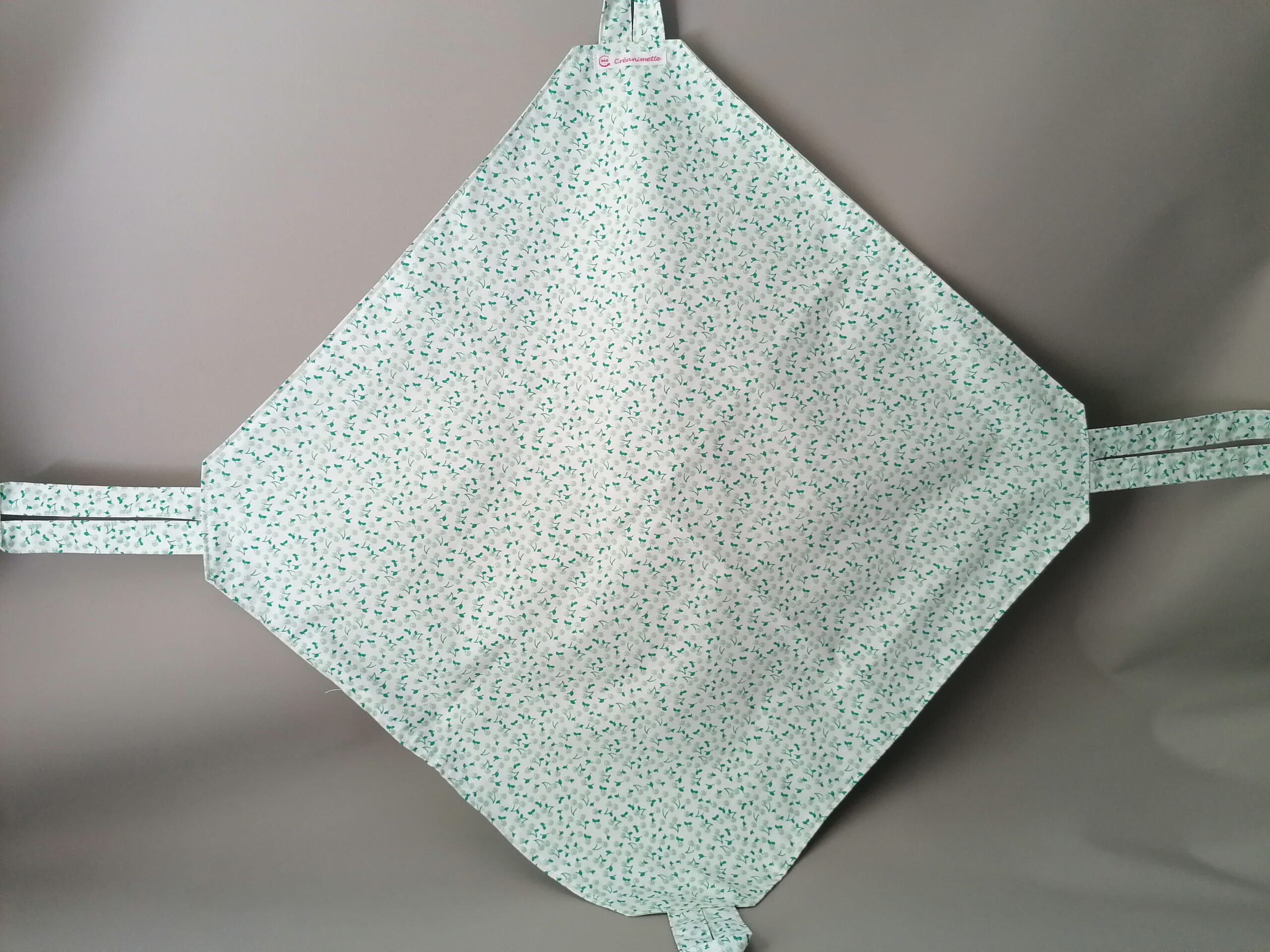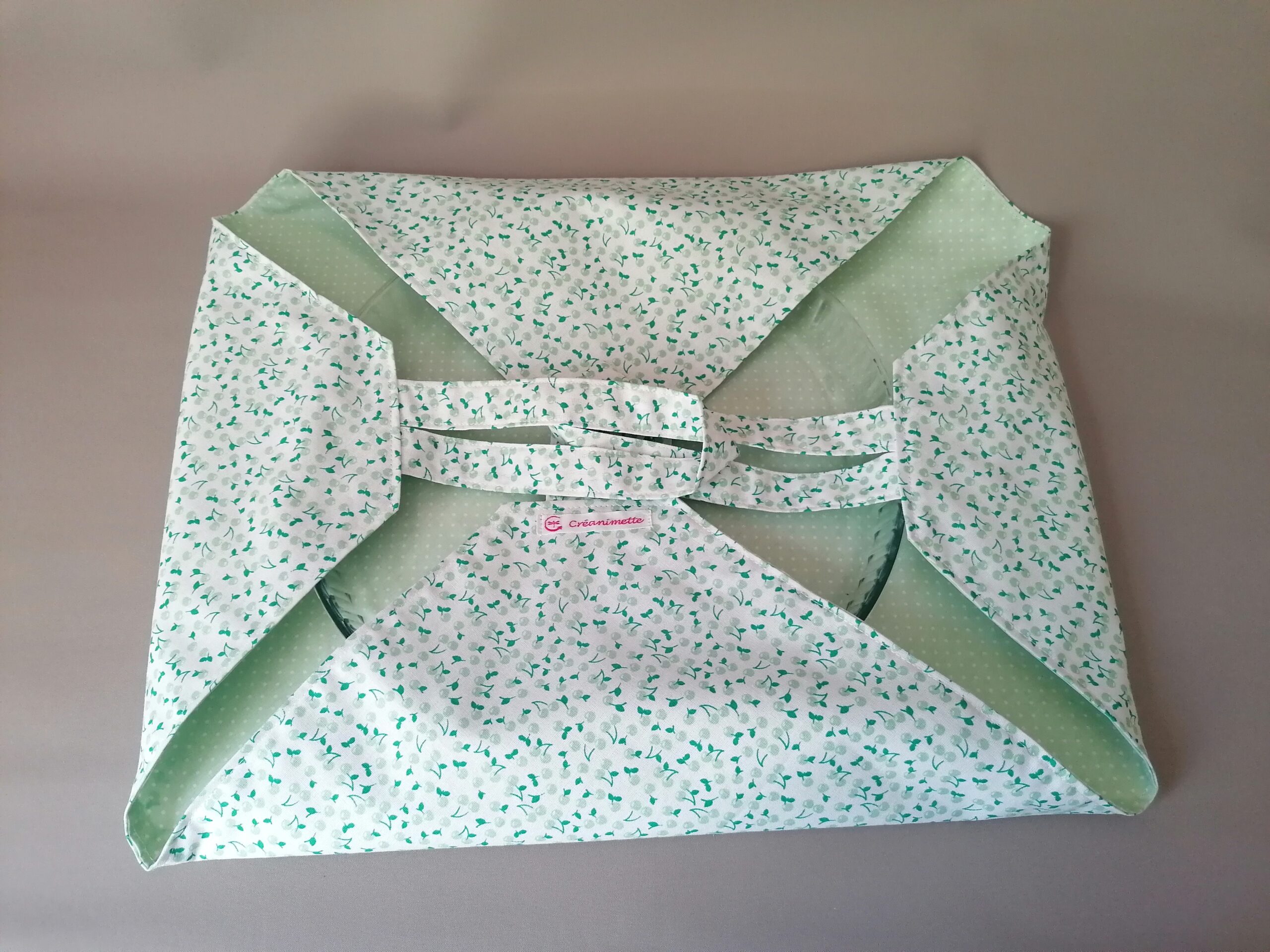 De grande taille, il permet de transporter des plats de toutes tailles et de formes. D’un côté un joli coton et de l’autre une toile enduite (plastifiée) pour faciliter le nettoyage. 🪡🧵✂️